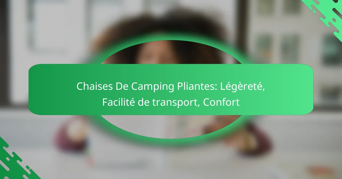 Pour évaluer le confort des chaises de camping pliantes, il est essentiel de considérer plusieurs critères, notamment les dimensions, les matériaux, le support lombaire et les tests en conditions réelles. Un bon équilibre entre légèreté et confort est crucial pour une expérience agréable en plein air.
