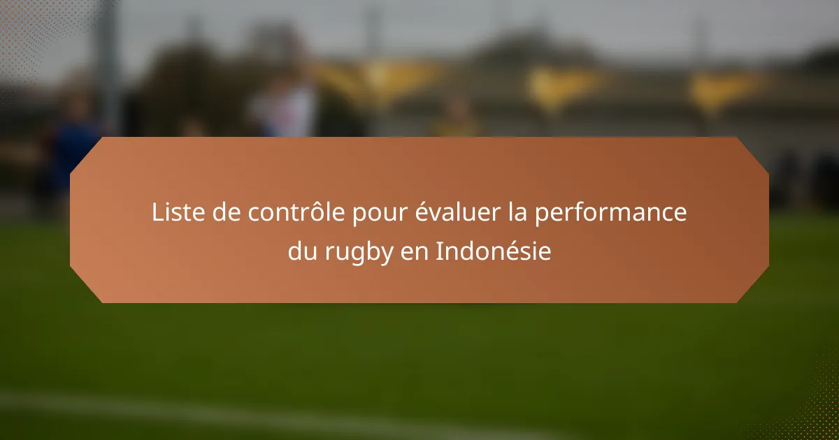 Évaluer la performance du rugby en Indonésie nécessite une liste de contrôle complète qui se concentre sur les indicateurs clés de performance (KPI) tels que les statistiques de match, les métriques des joueurs et la dynamique d’équipe. En utilisant des outils avancés et des techniques d’entraînement, les entraîneurs peuvent analyser efficacement la performance individuelle et collective, favorisant un environnement d’amélioration continue et d’adaptabilité stratégique.