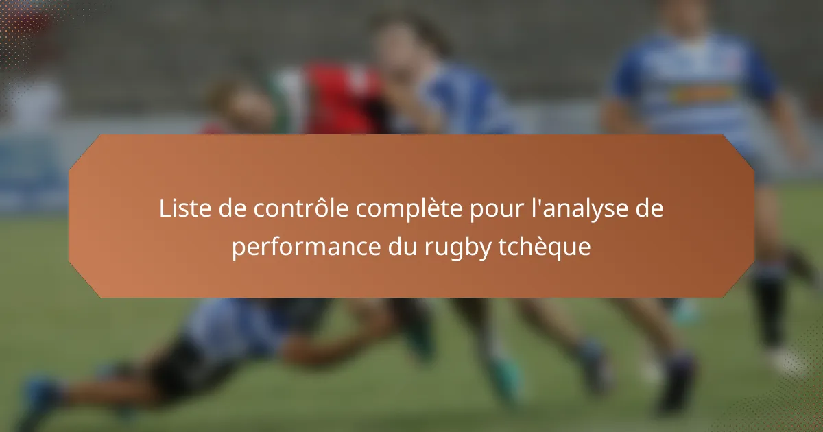 La liste de contrôle complète pour l’analyse de la performance du rugby tchèque se concentre sur des indicateurs clés tels que les statistiques des joueurs, la performance de l’équipe et la stratégie de jeu. En évaluant systématiquement ces éléments par le biais de la collecte de données et de l’analyse vidéo, les entraîneurs peuvent identifier les forces et les faiblesses, guidant ainsi les ajustements d’entraînement et de stratégie. L’utilisation de logiciels spécialisés et de technologies portables améliore encore les informations obtenues, garantissant une prise de décision éclairée pour améliorer la performance globale.