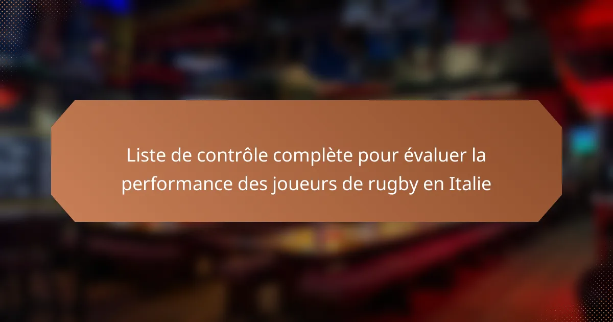 Évaluer la performance des joueurs de rugby en Italie implique une liste de contrôle complète qui englobe les indicateurs clés de performance (KPI) à travers diverses dimensions du jeu. En se concentrant sur la condition physique, les compétences techniques, la compréhension tactique, la résilience psychologique et le travail d’équipe, les entraîneurs et les recruteurs peuvent évaluer efficacement les contributions d’un joueur et son potentiel de croissance. Cette approche structurée garantit que tous les aspects critiques de la performance d’un joueur sont pris en compte, conduisant à des décisions plus éclairées en matière de développement des joueurs et de sélection des équipes.
