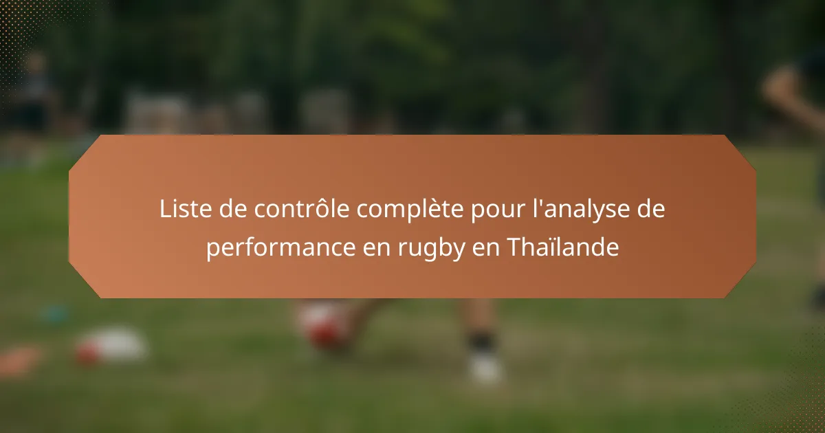 L’analyse de la performance au rugby est essentielle pour évaluer l’efficacité des joueurs et la stratégie de l’équipe, en particulier dans la scène rugbystique en pleine croissance en Thaïlande. En utilisant une liste de contrôle complète, les entraîneurs peuvent évaluer systématiquement divers composants tels que les statistiques des joueurs, la condition physique et la dynamique de l’équipe. La mise en œuvre de cette approche structurée, associée à la technologie moderne, permet une prise de décision éclairée qui améliore à la fois l’entraînement et la performance en match.