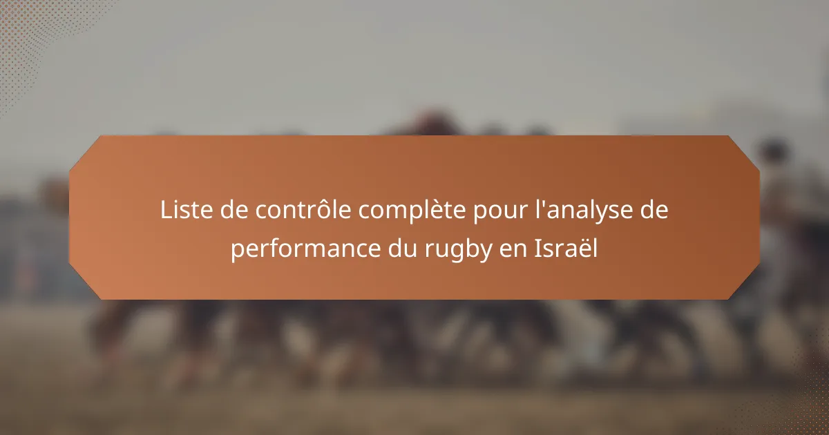 En Israël, l’analyse de la performance en rugby joue un rôle crucial dans l’élévation du jeu en fournissant aux équipes des informations essentielles sur la performance des joueurs et de l’équipe. En se concentrant sur des composants clés tels que les métriques des joueurs, la prévention des blessures et l’analyse stratégique, les équipes peuvent exploiter les données pour prendre des décisions éclairées qui améliorent leur performance sur le terrain. L’utilisation d’outils avancés comme les logiciels d’analyse vidéo et la technologie portable permet également aux entraîneurs et aux joueurs de peaufiner leurs stratégies et d’améliorer l’efficacité globale.