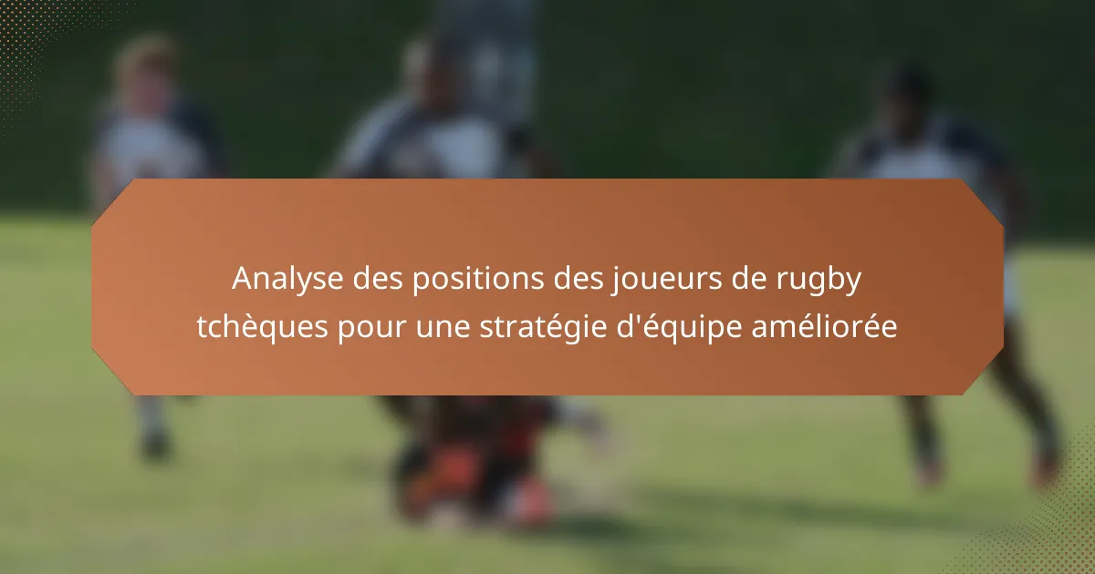 Le rugby tchèque présente une variété de postes de joueurs, chacun jouant un rôle essentiel dans la stratégie et la dynamique de l’équipe. Une compréhension approfondie de ces postes, ainsi que des indicateurs de performance clés, permet aux équipes d’optimiser leur jeu et d’adapter leurs tactiques pour une efficacité améliorée sur le terrain.