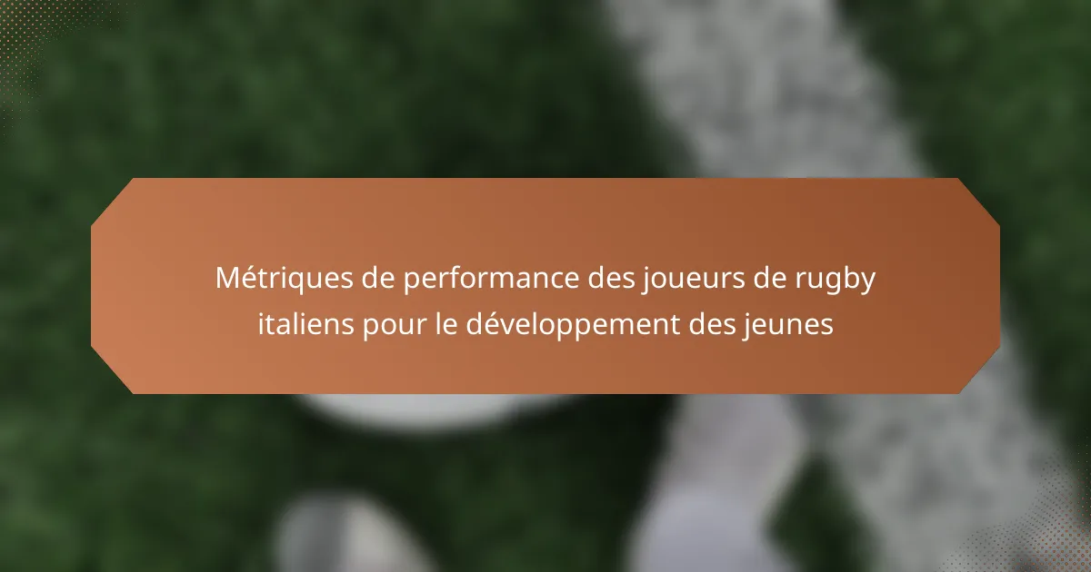 Les indicateurs de performance clés pour les joueurs de rugby italiens dans le développement des jeunes se concentrent sur la condition physique, les compétences techniques, la compréhension tactique, la résilience mentale et le travail d’équipe. Ces indicateurs aident les entraîneurs à évaluer le potentiel des joueurs et à orienter efficacement les programmes d’entraînement.