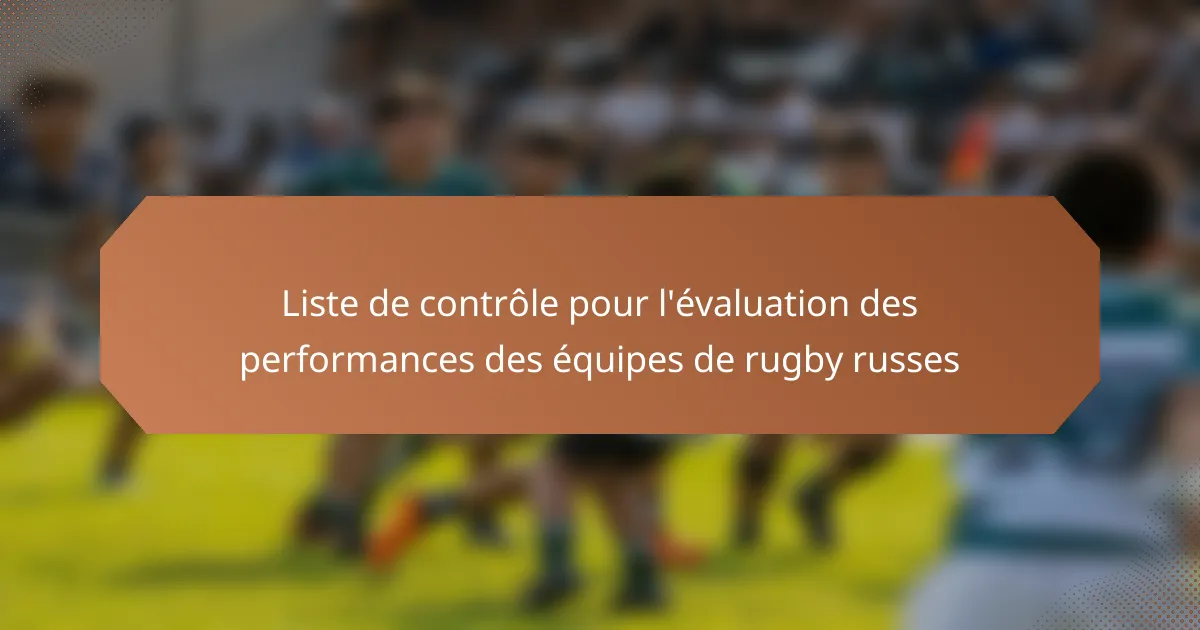 La liste de contrôle pour l’évaluation de la performance des équipes de rugby russes est essentielle pour évaluer à la fois les capacités individuelles et collectives. En se concentrant sur des indicateurs clés de performance, les entraîneurs peuvent identifier les forces et les faiblesses, permettant ainsi un entraînement ciblé et une planification stratégique. L’intégration d’outils tels que l’analyse vidéo et le suivi de la condition physique améliore encore le processus d’évaluation, conduisant finalement à une performance améliorée sur le terrain.
