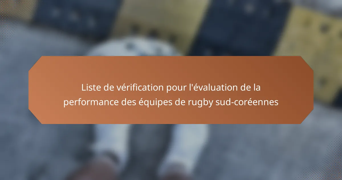 La liste de contrôle pour l’évaluation de la performance des équipes de rugby sud-coréennes est conçue pour fournir une approche structurée afin d’évaluer l’efficacité individuelle et collective sur le terrain. En se concentrant sur des indicateurs clés de performance (KPI), les entraîneurs peuvent obtenir des informations précieuses sur les compétences des joueurs, leur condition physique et la dynamique globale de l’équipe, ce qui permet d’améliorer la performance. L’utilisation d’outils et de technologies avancés renforce encore ce processus d’évaluation, garantissant une compréhension complète des forces et des domaines à développer.