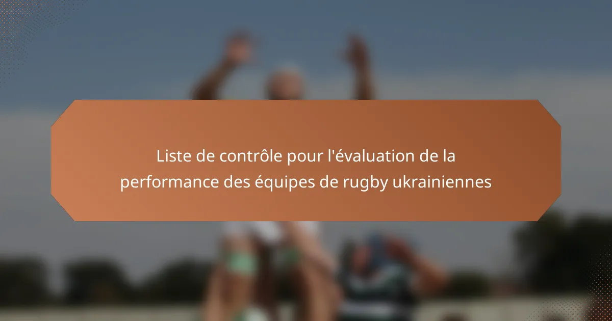La liste de contrôle pour l’évaluation des performances des équipes de rugby ukrainiennes sert d’outil essentiel pour évaluer divers aspects de la performance des joueurs et de l’équipe. En se concentrant sur des indicateurs clés de performance tels que les capacités physiques, la dynamique d’équipe et la qualité de l’entraînement, cette liste aide à identifier les forces et les faiblesses, facilitant ainsi des améliorations ciblées. De plus, l’intégration d’outils avancés comme l’analyse vidéo et la technologie portable améliore le processus d’évaluation, permettant une prise de décision basée sur des données pour de meilleurs résultats.