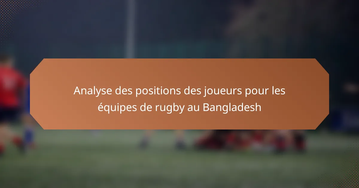 L’analyse des positions des joueurs au rugby est essentielle pour évaluer la performance individuelle en fonction des rôles spécifiques sur le terrain. Au Bangladesh, les équipes peuvent utiliser cette approche basée sur les données pour identifier les forces et les faiblesses, optimiser les formations et améliorer l’entraînement, ce qui conduit finalement à des stratégies de jeu et à un succès améliorés.