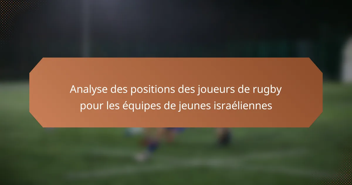 Dans le rugby jeunesse, comprendre les positions des joueurs est crucial pour optimiser à la fois la dynamique de l’équipe et le développement des compétences individuelles. En s’appuyant sur l’analyse, les entraîneurs peuvent obtenir des informations précieuses sur la performance des joueurs, identifiant les forces et les faiblesses qui informent un entraînement ciblé et une planification stratégique des matchs. Cette approche améliore non seulement la performance globale de l’équipe, mais soutient également la croissance des jeunes athlètes dans le sport.