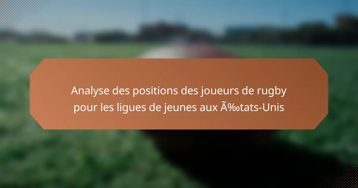 Dans les ligues de rugby pour les jeunes, les positions des joueurs sont principalement catégorisées en avants et en arrières, chacune ayant des rôles distincts qui contribuent à la stratégie globale de l’équipe. Comprendre ces positions aide les entraîneurs et les joueurs à optimiser leurs compétences et leur travail d’équipe.