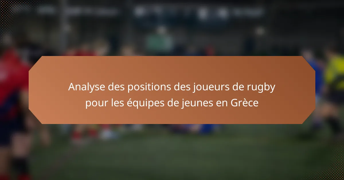 Dans les équipes de rugby jeunesse, les principales positions des joueurs sont classées en avants et arrières, chacune ayant des rôles et des responsabilités distincts. Comprendre ces positions est crucial pour développer des stratégies efficaces et favoriser la croissance des joueurs.